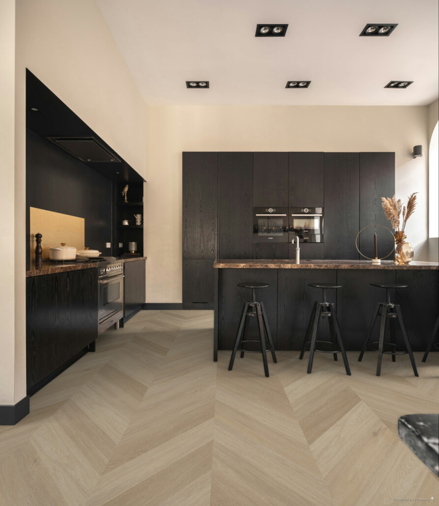 De Therdex Chevron C6542 Click PVC vloer is een stijlvolle keuze voor wie een interieur wil verrijken met een uitgesproken, maar rustige vloer. Het chevronpatroon – ook wel bekend als de Hongaarse punt – zorgt voor een strak en symmetrisch geheel dat direct klasse uitstraalt. Deze legwijze geeft de ruimte diepte en karakter, terwijl het wooncomfort centraal blijft staan.